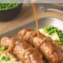 Love bangers and mash!! My husband is English and introduced me to this deliciousness so I made these for him and they get his British seal of approval. The gravy is everything.