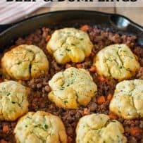Ground beef, onion and carrots are simmered with Worcestershire sauce and beef stock, topped with fluffy dumplings and baked.