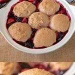 Everyone loves a fruit cobbler and this might just be the easiest dessert because you can make it the day ahead, then reheat before serving. You can make this cobbler year-round with fresh seasonal berries, or frozen.