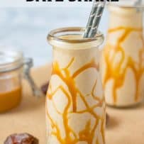 When I made no-churn vanilla bean ice cream a few weeks ago, I’ve been using it up in recipes like chocolate pecan coated ice cream balls and now these date shakes. What goes really well with dates and vanilla ice cream? Salted caramel! So I decided to add a twist to this simple shake and add some of my homemade salted caramel sauce. It is so good!