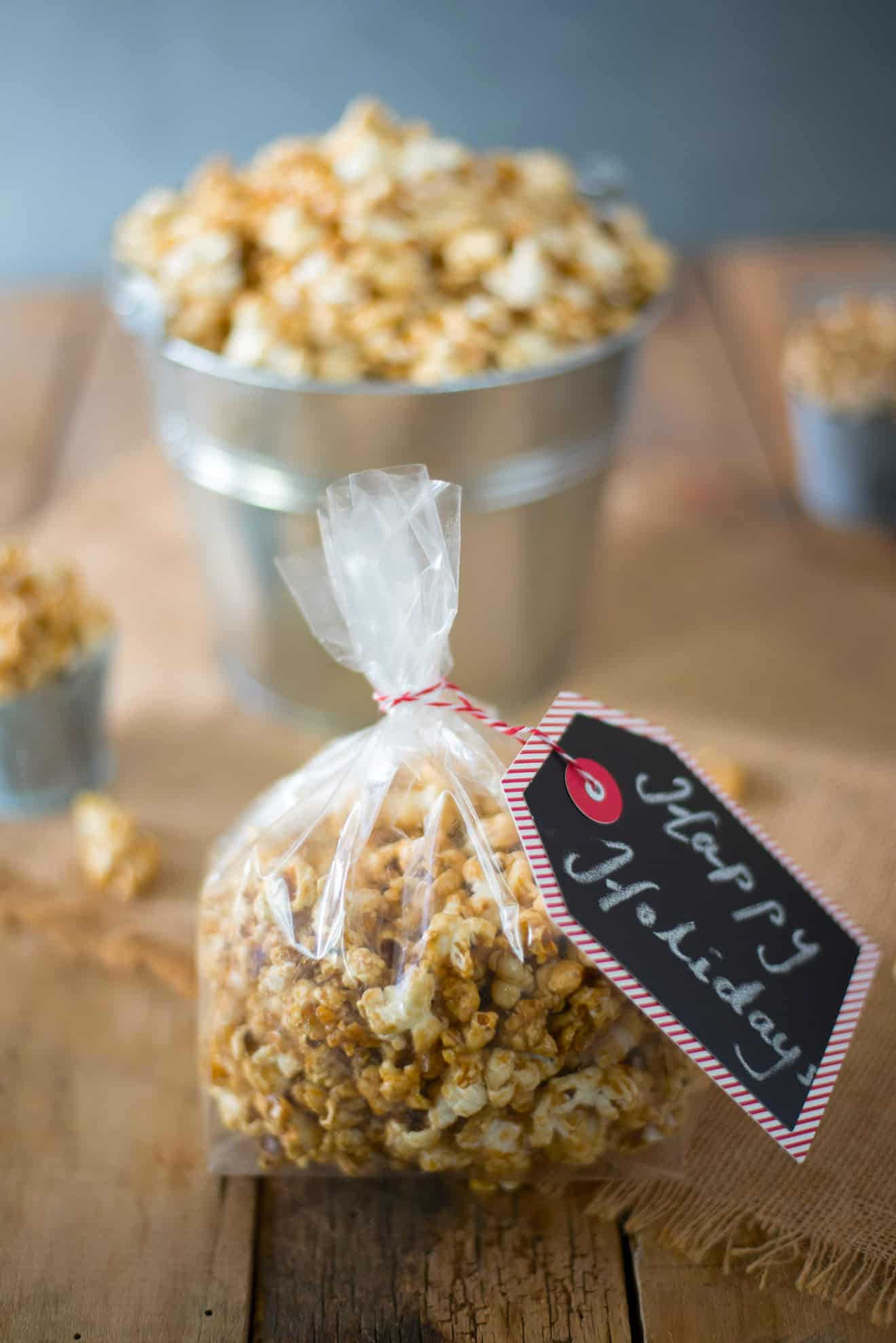 You can enjoy this Apple Cider Caramel Popcorn all fall and winter season. Great for Halloween, a cosy night with a movie as well as it makes a wonderful holiday gift for neighbors, friends, teachers or the mail man. Just add to cellophane bags and add tie with gift tag.