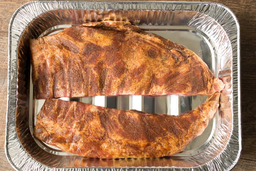 - Mix all the spice rub ingredients in a bowl. Rub all over the ribs and massage well into the meat.