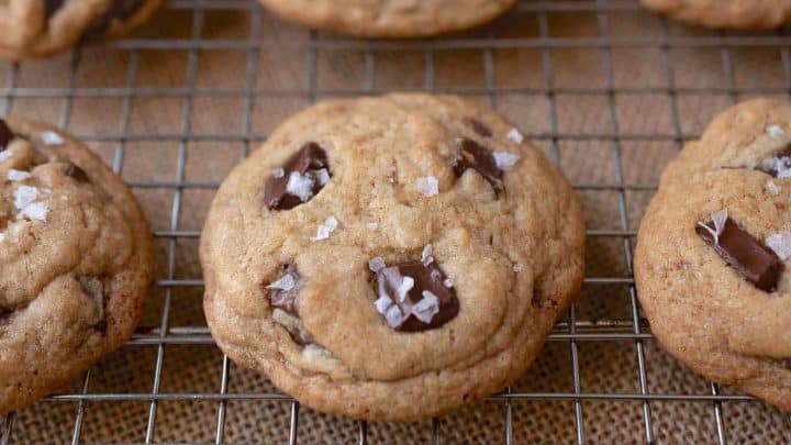 With crispy edges and a chewy center, these cookies come with chocolate chunks topped with flaky sea salt.