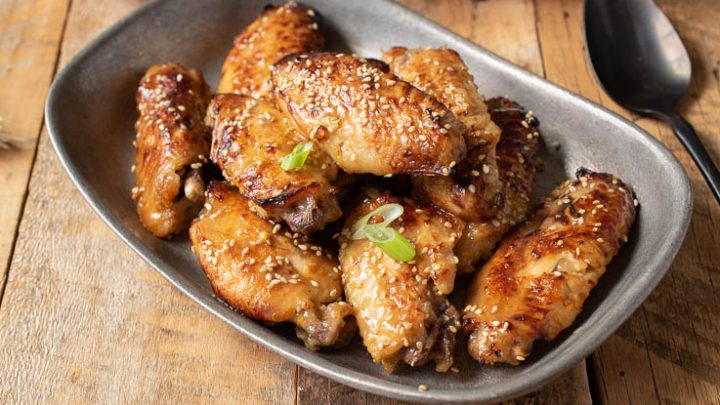 Chicken wings are slow cooked in a delicious orange sauce, then broiled to crisp.